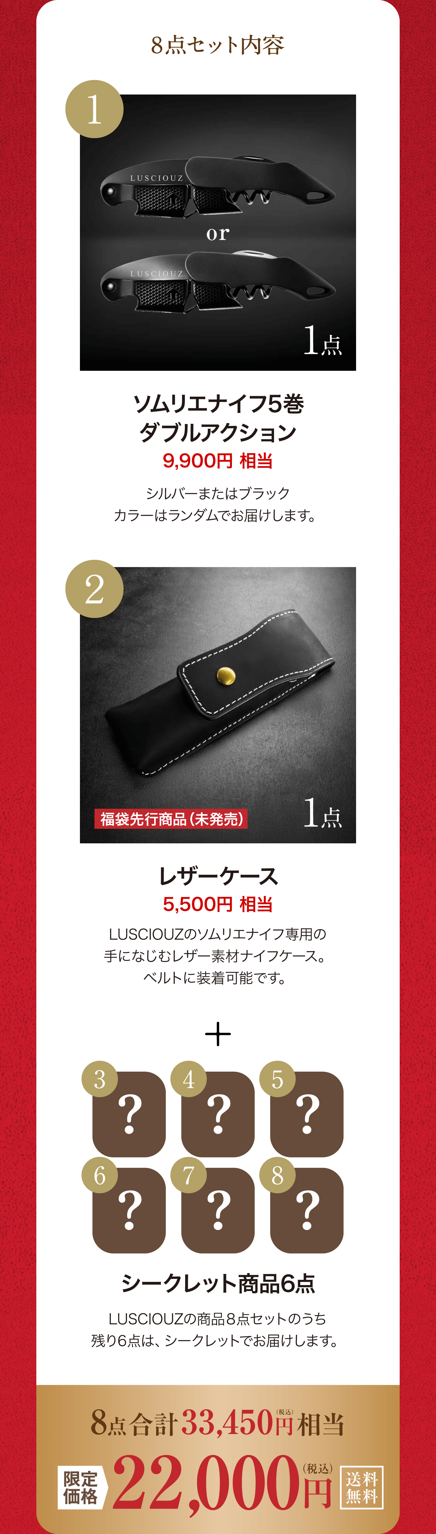 ・福袋の特性上、内容の指定・変更はできません。